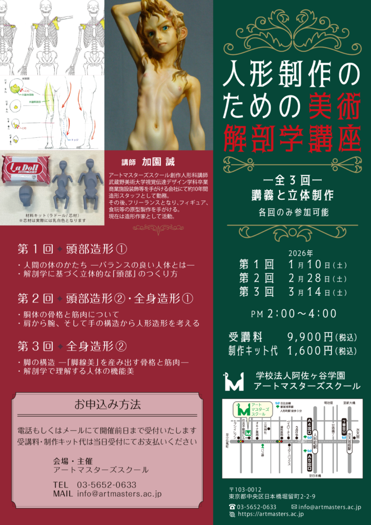 「人形制作のための美術解剖学講座」マスターコース創作人形科 加園誠先生による特別講座